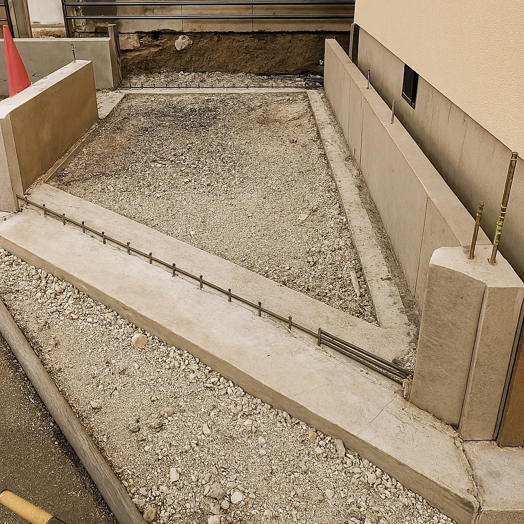 墨出しの段階でも、型枠工事の段階でも、