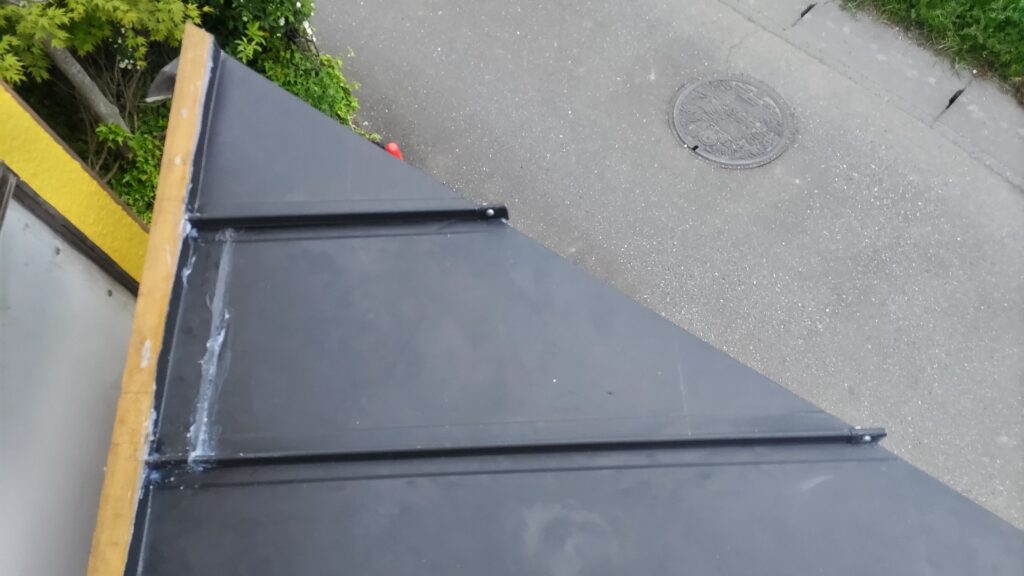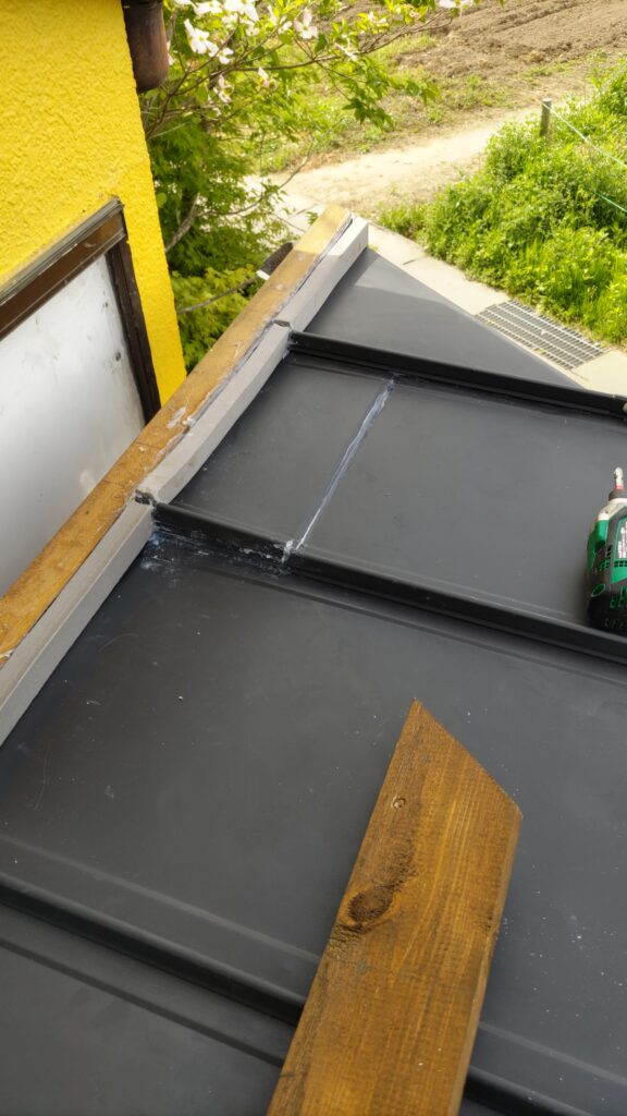 重ねられる方の片側のハゼの山をカットして。立ち上がりをたたいていますが、両側をやってもいいかもしれないです。これにブチルゴム併用で小庇もやってみようと思ってました。。